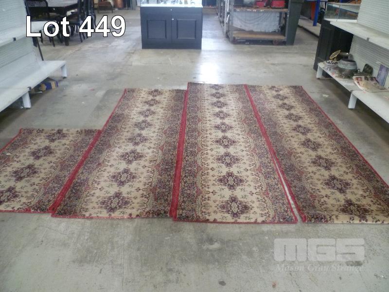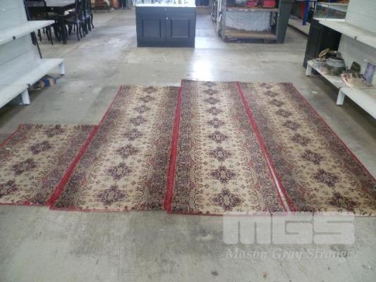 4 X RED/BIEGE PERSIAN STYLE HALL RUNNERS, INC; 2 X 2.8 METRES, 1 X 2.46 METRES, 1 X 1.25 METRES