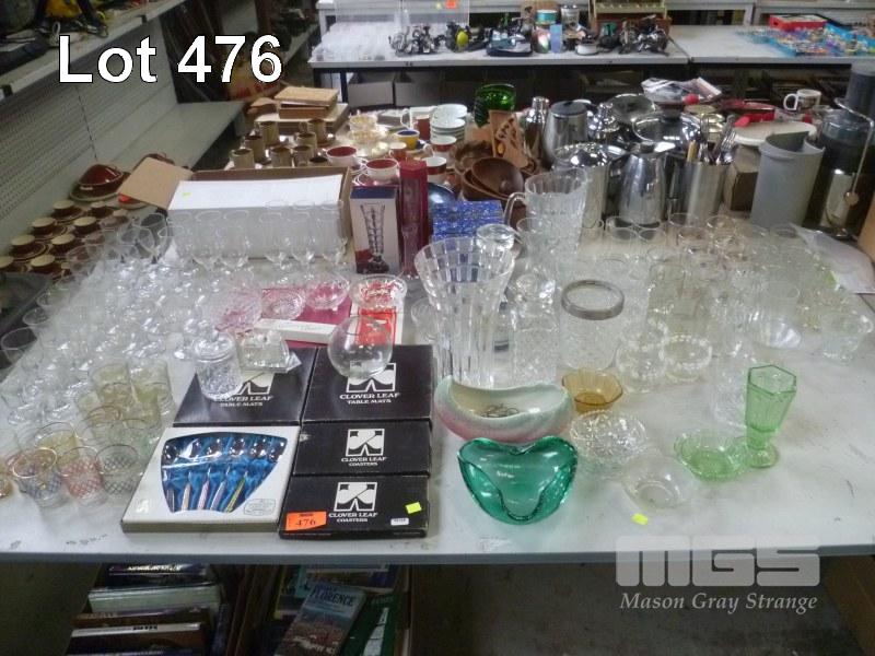 ASSORTED GLASSWARE, PLACEMATS, ETC, 1 x TABLE