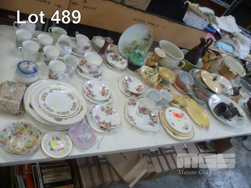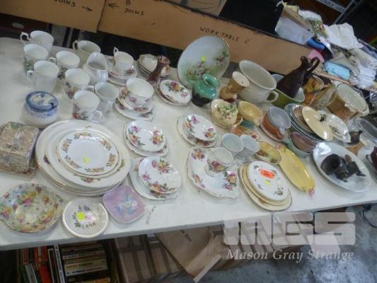 ASSORTED DINNERWARE, BOWLS, COOKWARE, ETC, 1 x TABLE