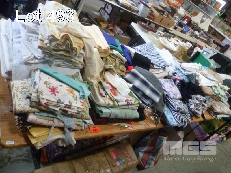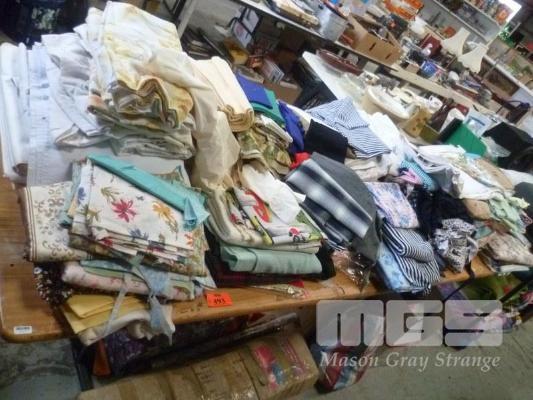 ASSORTED MATERIAL, BEDDING, ETC, 1 x TABLE