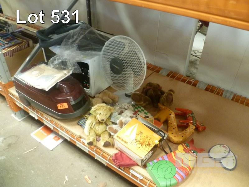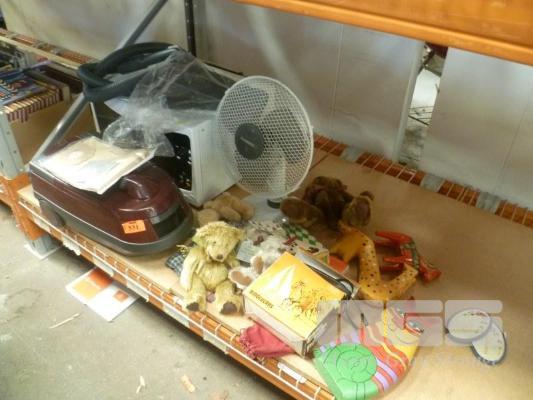ASSORTED TOYS, MICROWAVE, FAN, ETC