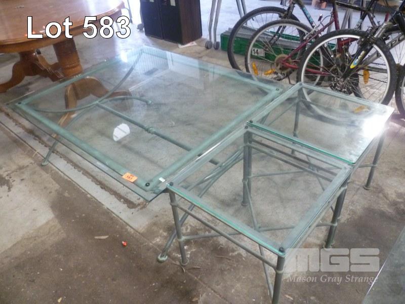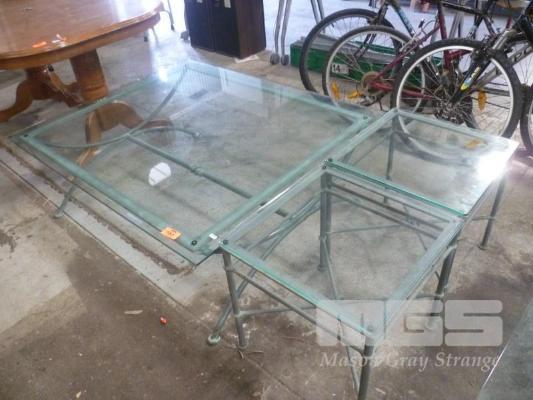 LARGE COFFEE TABLE, SOLID METAL FRAME, GLASS TOP, 110 x 130cm