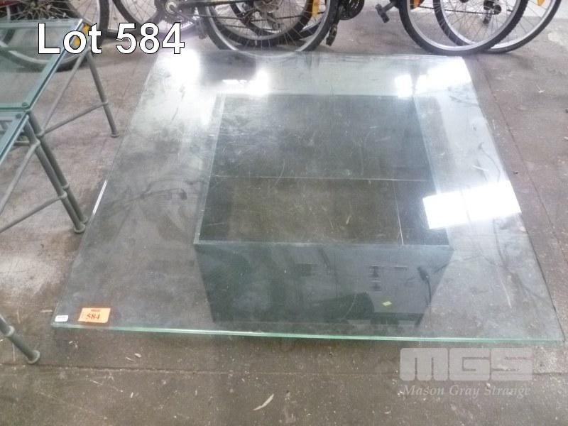 SQUARE 2 PIECE, GLASS TOP COFFEE TABLE, 106 x 106cm WITH PLASTIC BASE