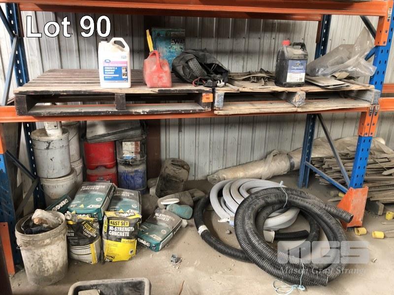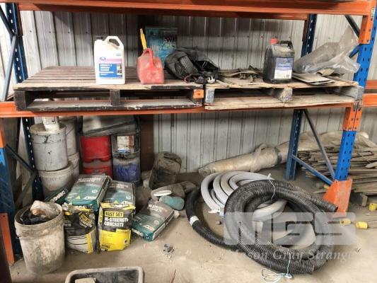 CONTENTS OF 1 BAY, 10 x BAGS 20kg CONCRETE, DRIVEWAY CLEANER, DEGREASER, 2 x ROLLS INSULATION, SOAKAGE PIPE & VARIOUS OILS