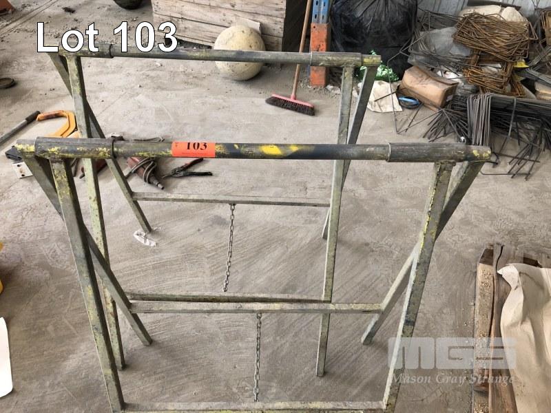 PAIR OF STEEL FOLDABLE "A" FRAME WORK STANDS, 800mm(W) x 1000mm(H)