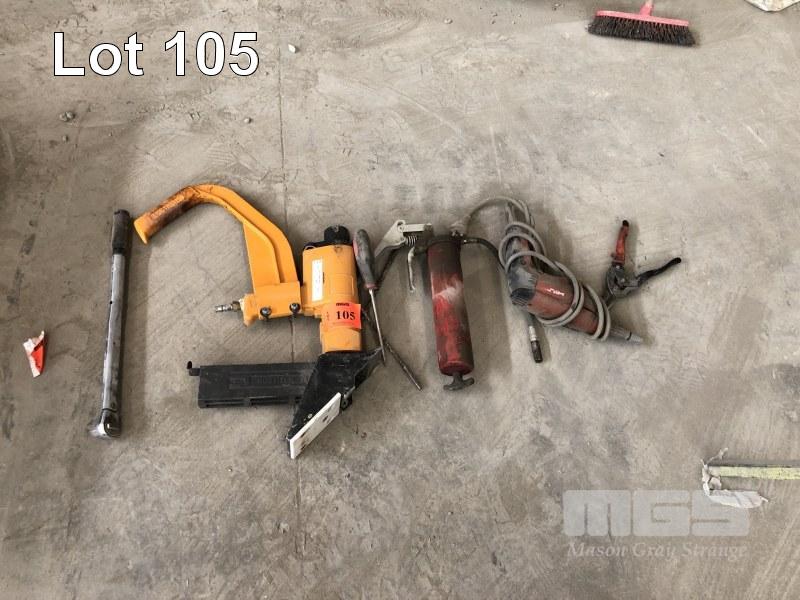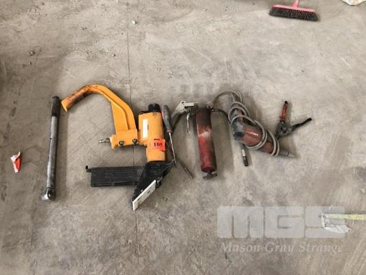 BOSTITCH NAIL GUN, PNUEMATIC, GREASE GUN & HILTI TEK GUN AND 1/2" TENSION WRENCH