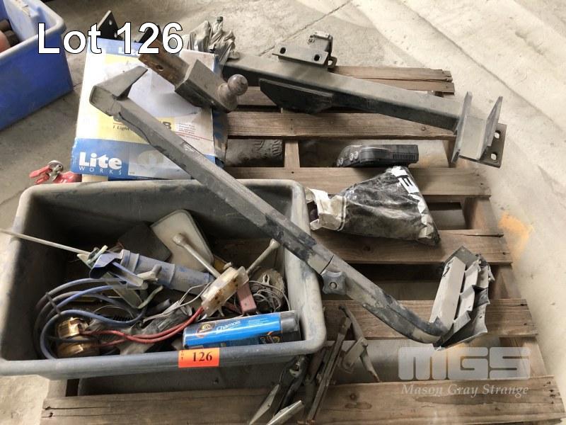 ASSORTED PALLET LOT, TOW BAR, 3 x OYSTER LIGHTS, 3 BIKE RACK, CYLINDER HONE, GEAR PULLER, TIMING LIGHT, FIRE EXTINGUISHER
