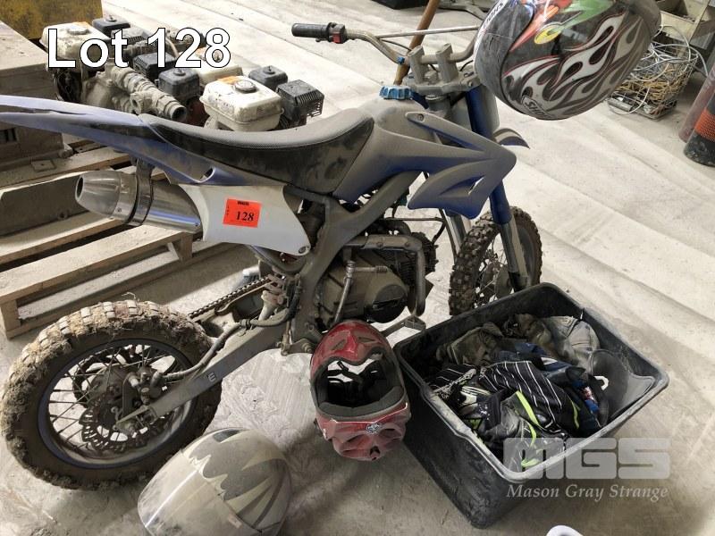 MINI DIRT BIKE, 3 x HELMETS & CLOTHING