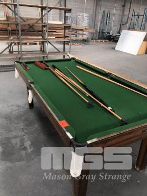 POOL TABLE, SLATE TOP BUMBLE BEE . 7 x 3'6" APPROX CUES AND STEADYS. WITH COVER SHEET