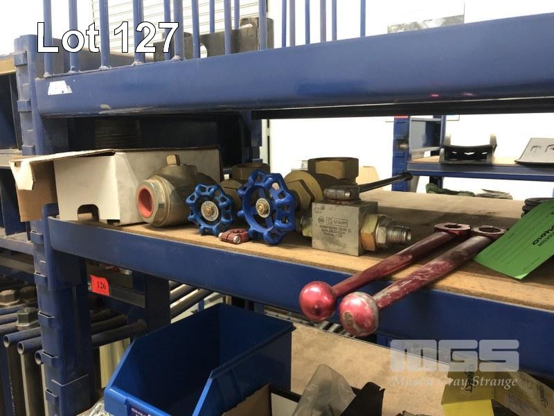 ASSORTED HARDWARE, INC BRASS VALVES, HOSE, M40 DRIVER SUB, STAUFF CONTROLLER, HANDLES, CONDUIT CLAMPS, ETC 1 x SHELF