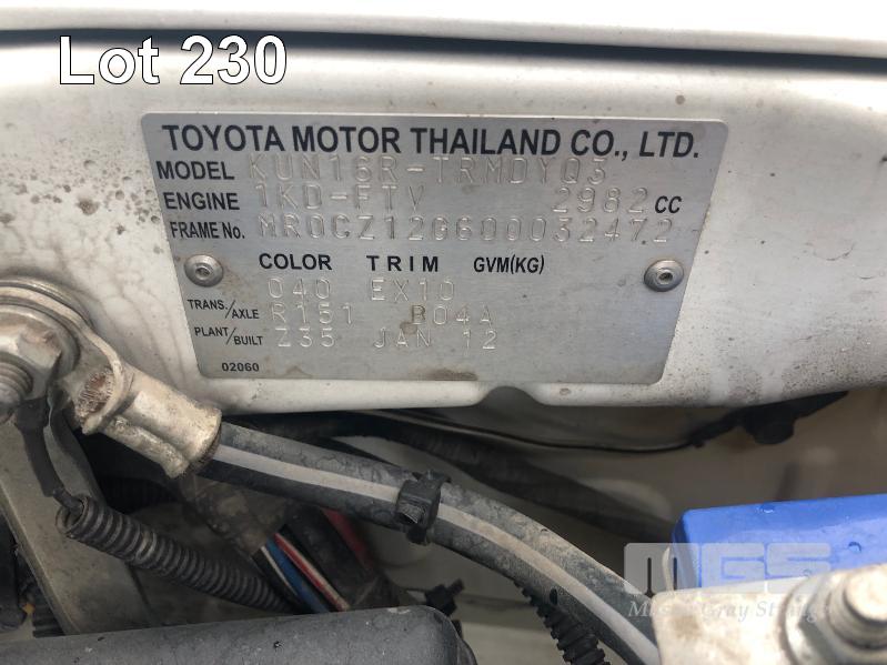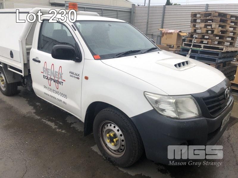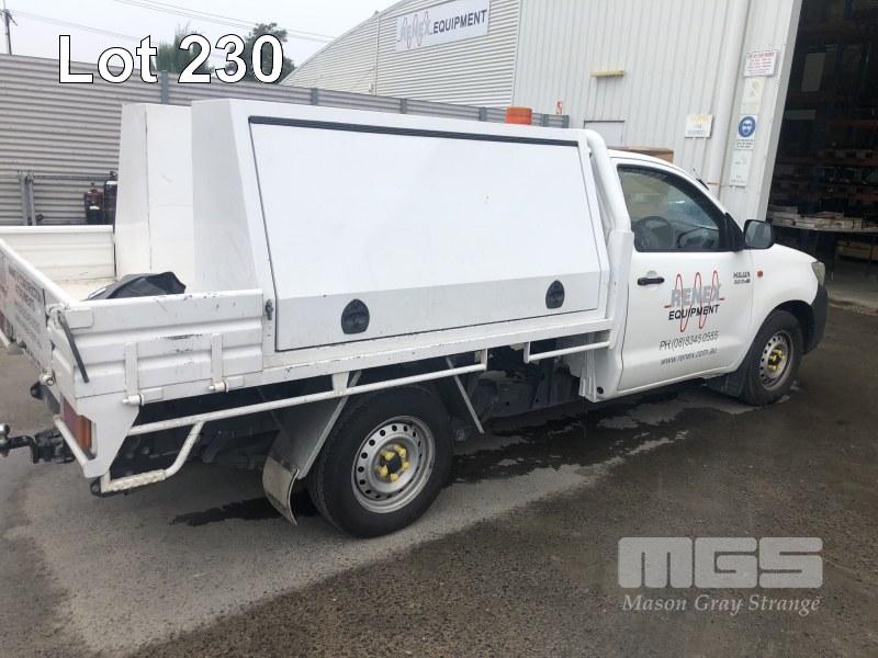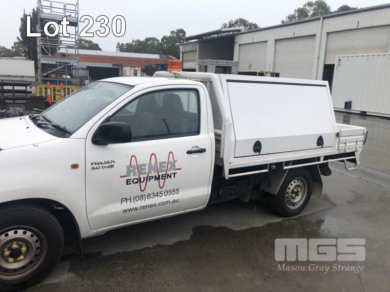 2012 TOYOTA KUN16R HILUX SERVICE UTILITY 4 x 2 REG: S905 APD VIN: MR0CZ12G600032472 ODO: 91,172 kms SHOWING 3 LITRE, MANUAL, TURBO DIESEL, 4 x 2 AIR CON, POWER STEERING, TRAY TOP BACK WITH DUAL SIDED TOOL BOXES & TOW PACK (NO OWNER'S MANUAL, NO SERVICE BOOKS)
