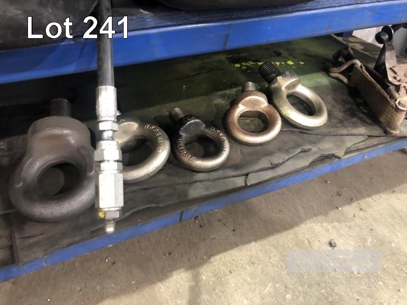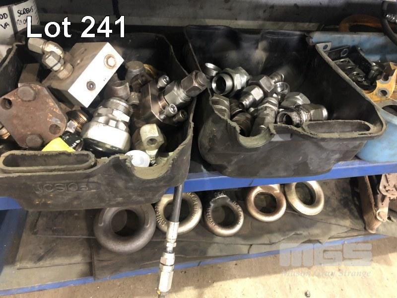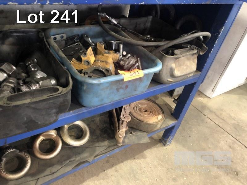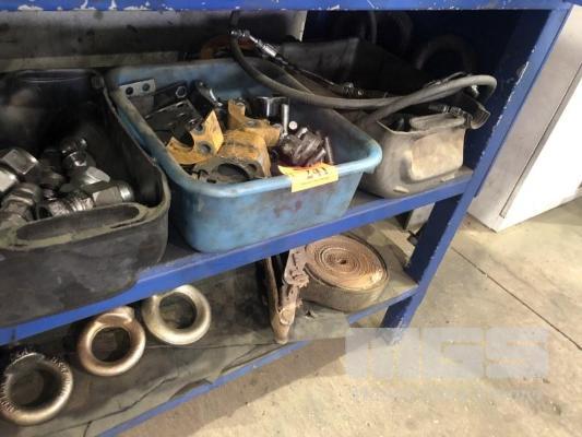 HYDRAULIC TEST HARDWARE, INCL OIL FITTINGS, COUPLINGS, FASTENERS, EYE BOLTS & PINS (ON 2 SHELVES)