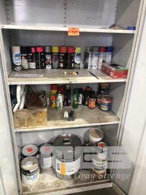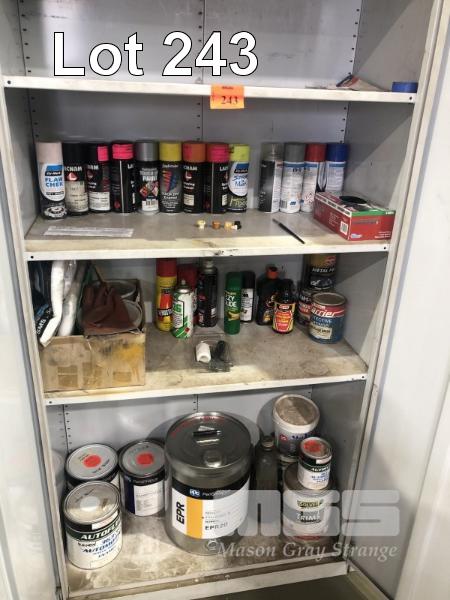 CABINET CONTENTS ONLY, AEROSOL PAINTS, REDUCER, AUTO ACRYLICS, 2 PAK PAINTS, ETC.
