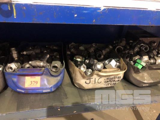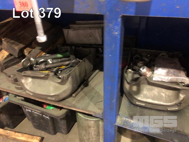 CONTINGENCY OF BREAKER SPECIAL TOOLS, INCL HOSE & PIPE FITTINGS PLUGS & CAPS DRAIN & PARTS TRAYS (UNDER BENCH)