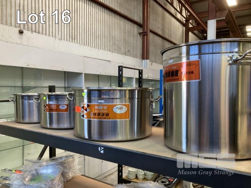 4 x STAINLESS STEEL STOCK POTS, 35, 40, 45 & 50cm