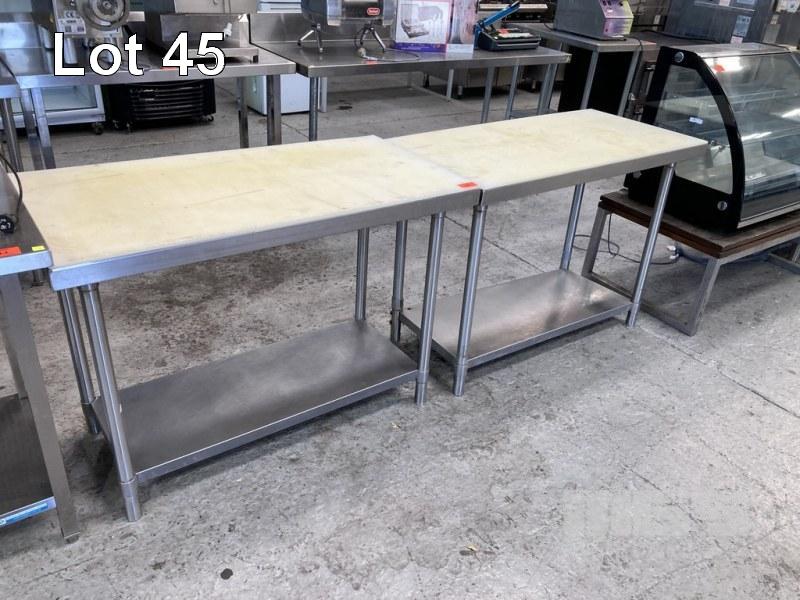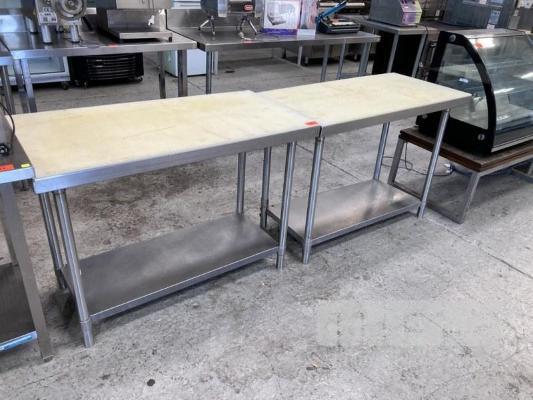 2 x STAINLESS STEEL BENCHES, 120 x 60cm, 2 TIER, WITH NYLON TOP