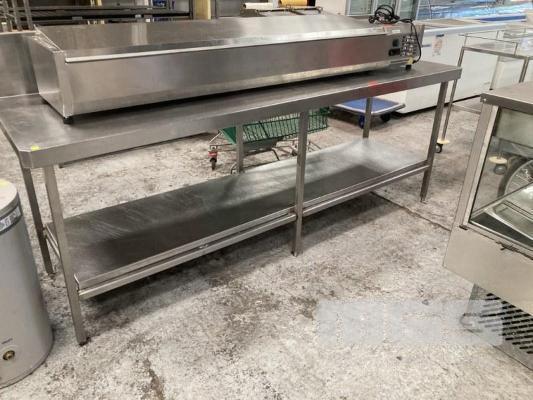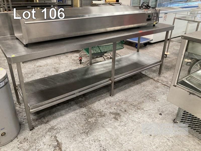 STAINLESS STEEL PREP BENCH, 245 x 70cm, 2 TIER WITH SPLASHBACK