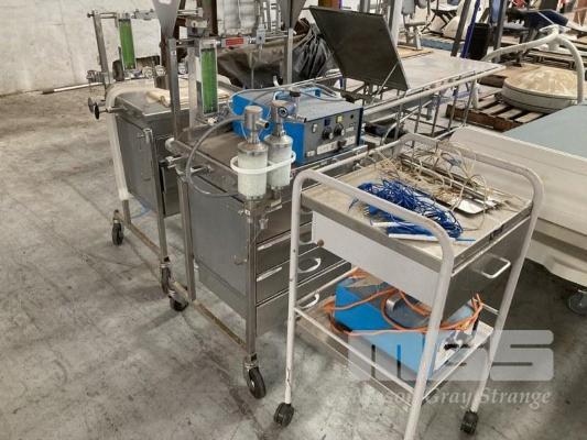 3 x STAINLESS STEEL HOSPITAL TROLLEYS & CONTENTS