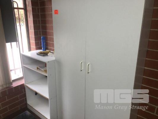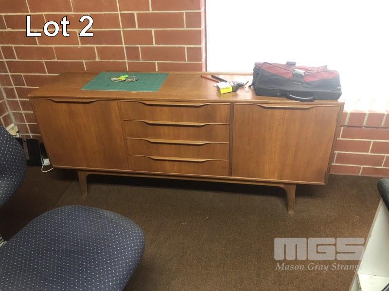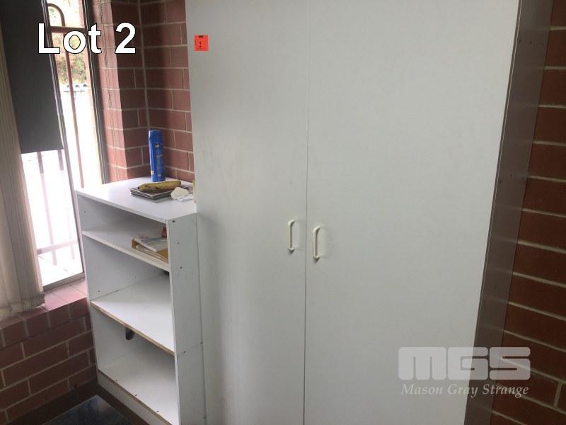 2 DOOR TIMBER LAMINATE CUPBOARD, 4 TIER, 1950 x 1080mm, 4 TIER SHELF, 1050 x 700 x 450mm & CREDENZA 1650 x 750 x 400mm