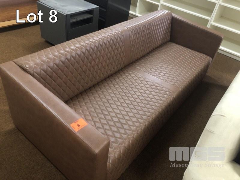 3 SEATER SOFA, BROWN VINYL NEEDS LEGS