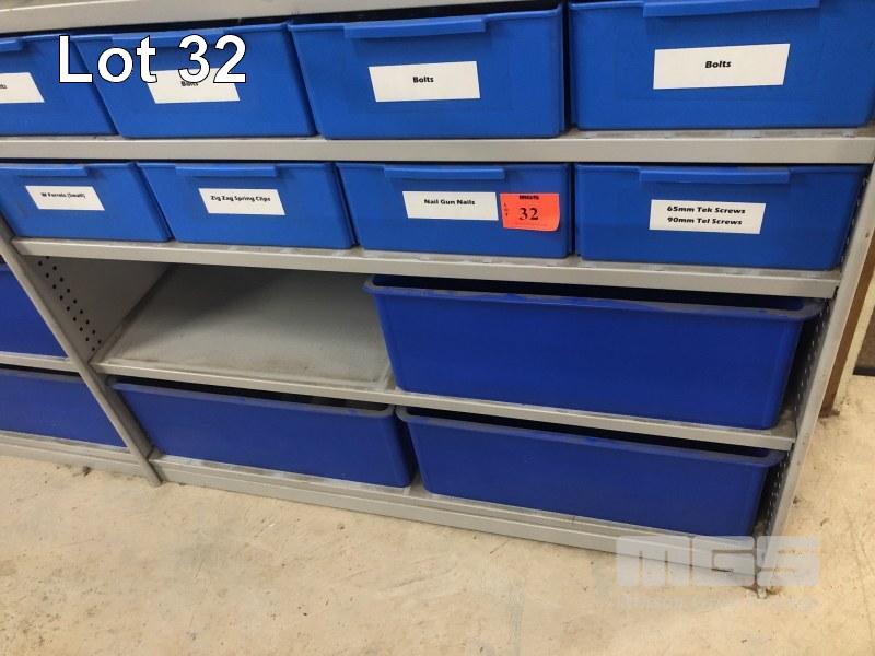 6 x PLASTIC STOCK TUBS & CONTENTS BOLTS, CLIPS, FERRULES