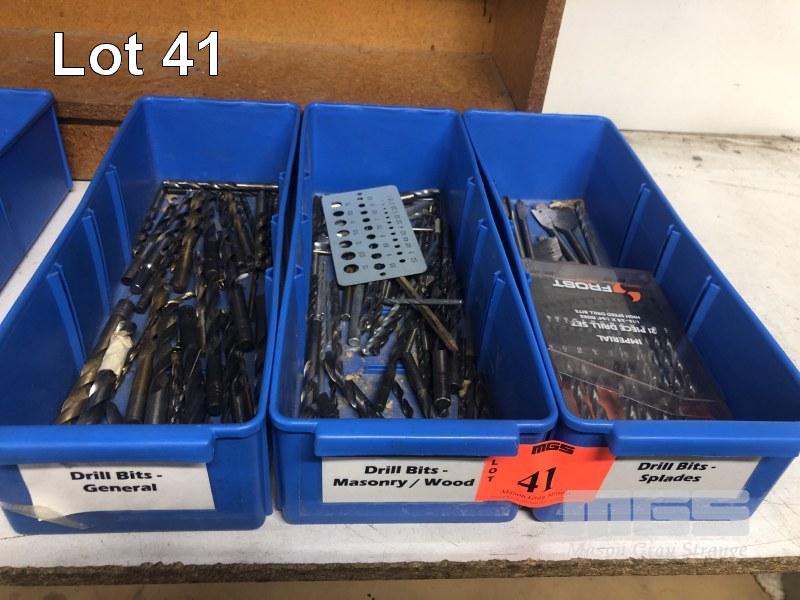 ASSORTED DRILL BITS, STEEL & TIMBER, APPROX 100 IN 3 x TUBS