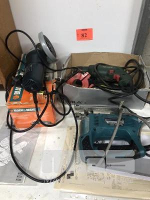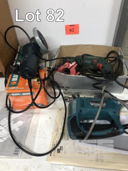 MAKITA JIGSAW, B&D 115mm ANGLE GRINDER & BOSCH PSB550RE HAMMER DRILL, ALL 240V