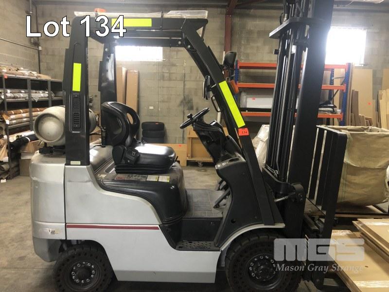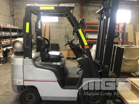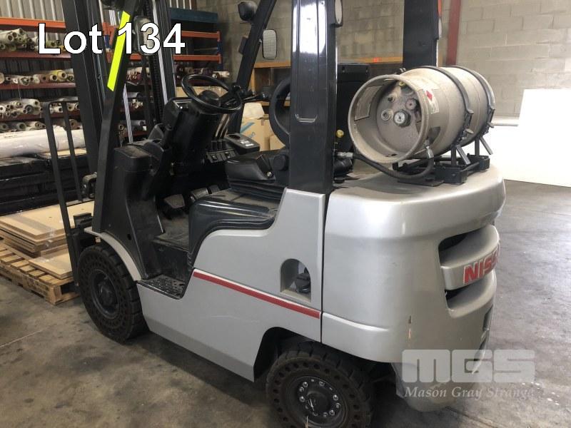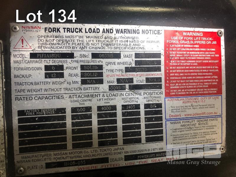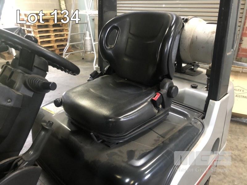 NISSAN FORKLIFT MOD: P1F1A18DU HOURS: 2,063 LPG, SIDESHIFT BLADE POSITION DIGITAL WEIGH READOUT CUSHION TYRES LIGHTS, ROOF COVER & MIRRORS EXCELLENT CONDITION