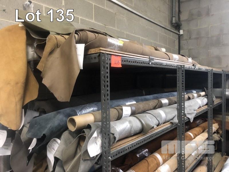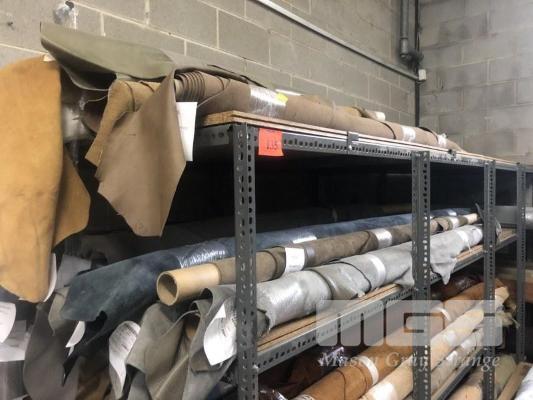 45 (APPROX) x LEATHER HIDES, VARIOUS COLOURS, 3 x SHELVES