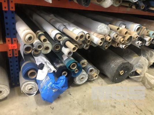ROLLS OF FABRIC, VARIOUS TYPES & COLOURS 2 x BOTTOM SHELVES