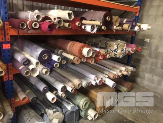 ROLLS OF FABRIC, VARIOUS TYPES & COLOURS 4 x SHELVES