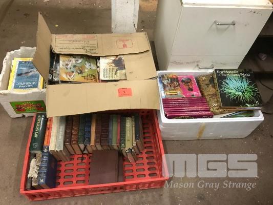 ASSORTED BOOKS & MAGAZINES, NEW JUNIOR ENCYCLOPEDIA, READERS DIGESTS SERIES, ETC, 4 x BOXES