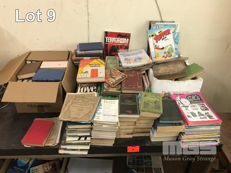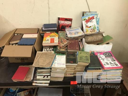 ASSORTED BOOKS & MAGAZINES, CONTENTS OF TABLE & UNDER TABLE