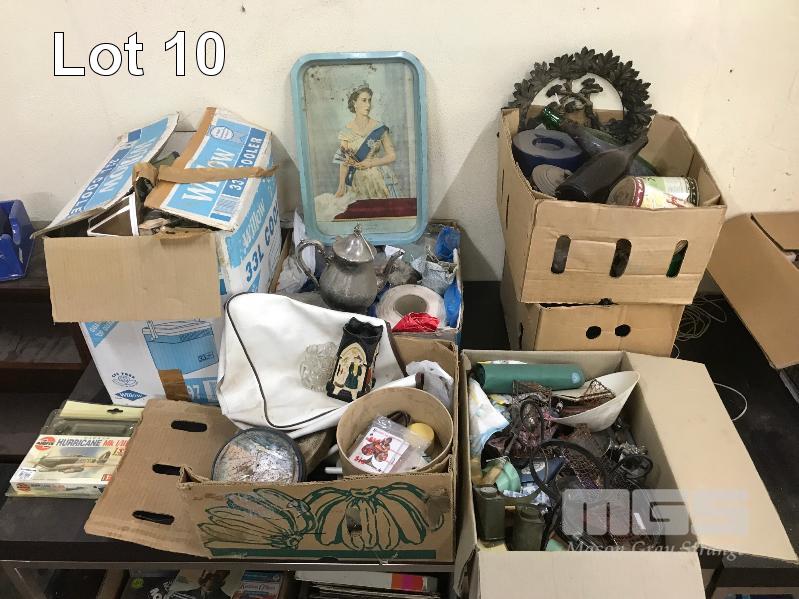 ASSORTED COLLECTABLES & HOMEWARES INC VINTAGE TINS, EPNS, PICKAXE BOTTLES, ETC, 6 x BOXES
