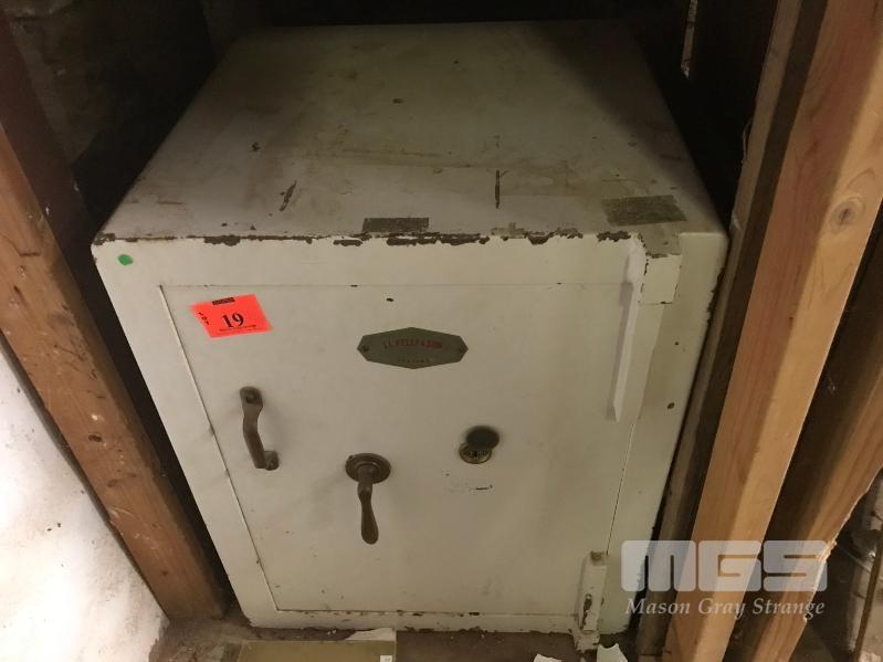 SAFE, JL KELLY & SON, MELBOURNE 780 (H) x 620 (W) x 610mm (D) KEY TYPE, SINGLE DOOR (NOTE: VERY HEAVY, BUYER TO REMOVE, FLOOR IS UNSTABLE & WILL NEED TO BE BOARDED TO REMOVE, AT BUYERS EXPENSE)
