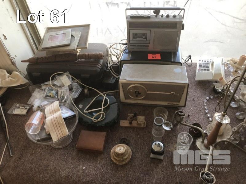 VINTAGE RADIOS INC BAKELITE, HOMEWARES & COLLECTABLES, LIGHT FITTINGS, GLADSTONE BAG, ETC