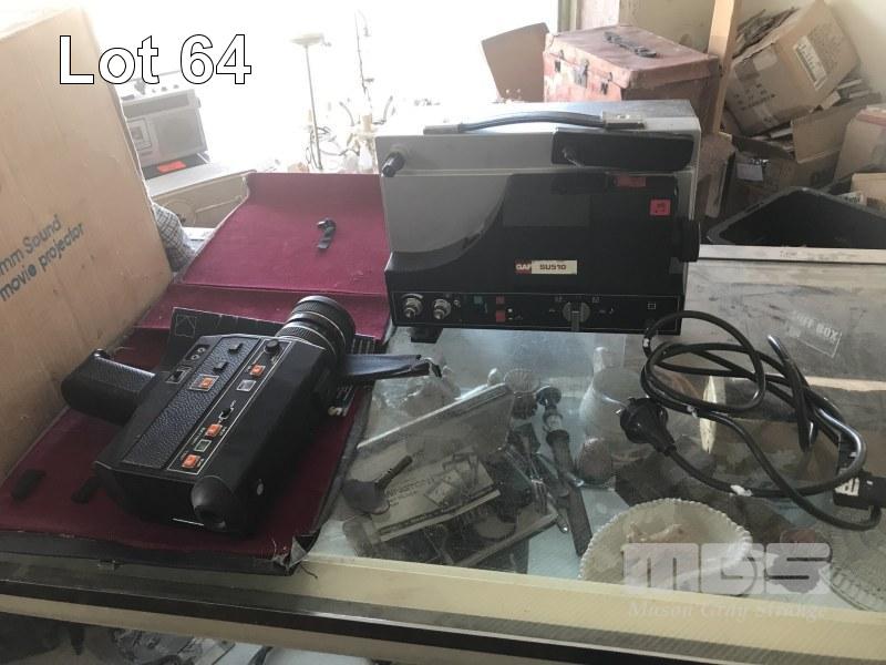 GAF 8mm FILM PROJECTOR & VINTAGE HAND HELD MOVIE CAMERA & CASE