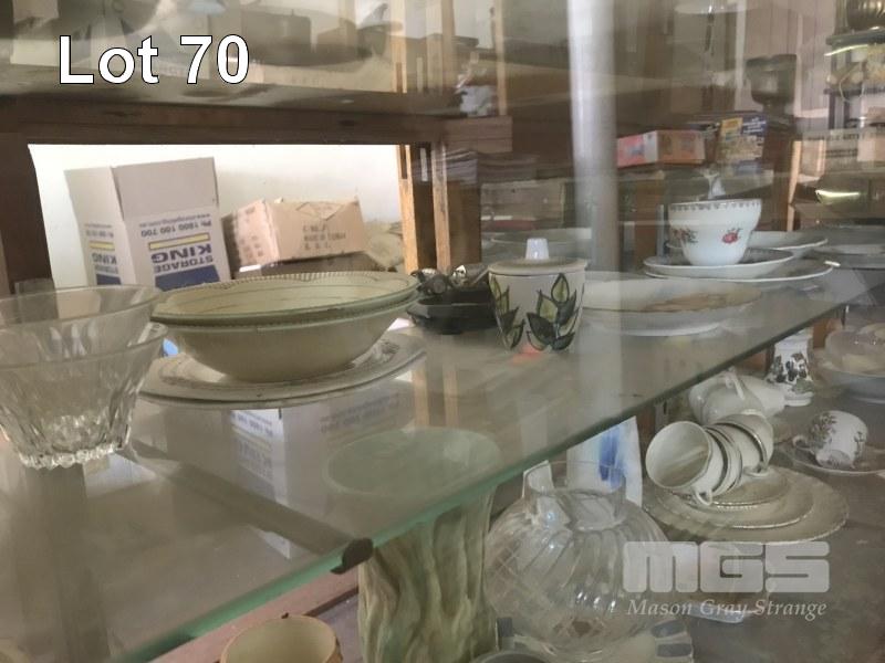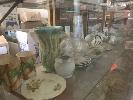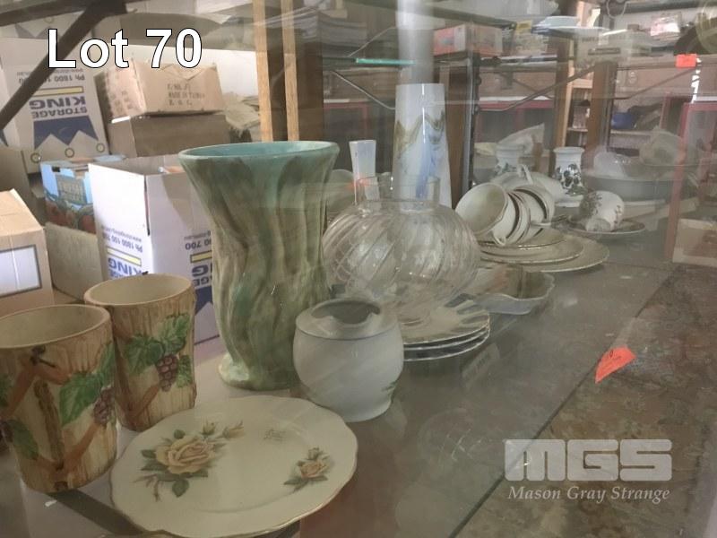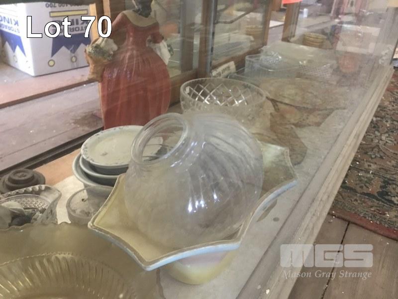 ASSORTED GLASS & CERAMICWARE, VASES, GLASS LIGHT SHADE, BOWLS, PLATES, CUPS, ETC