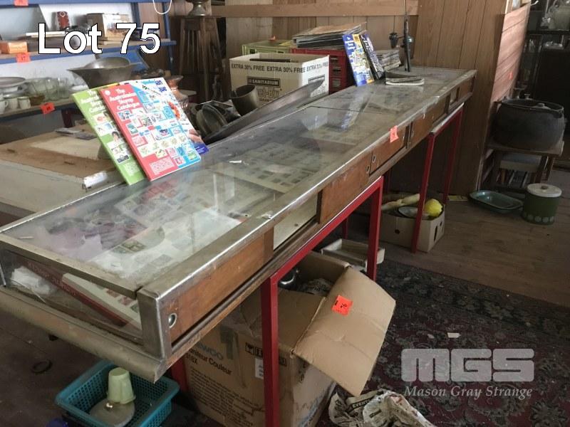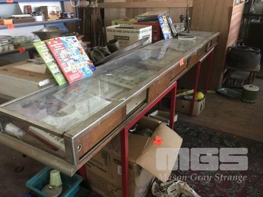VINTAGE TABLE TOP GLASS DISPLAY CABINET WITH 2 DOOR SLIDING ACCESS