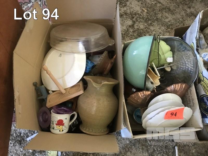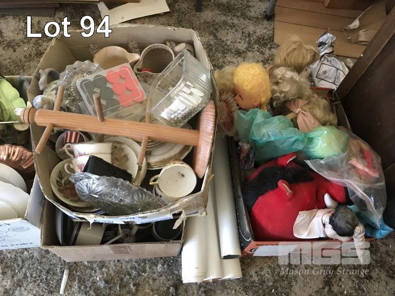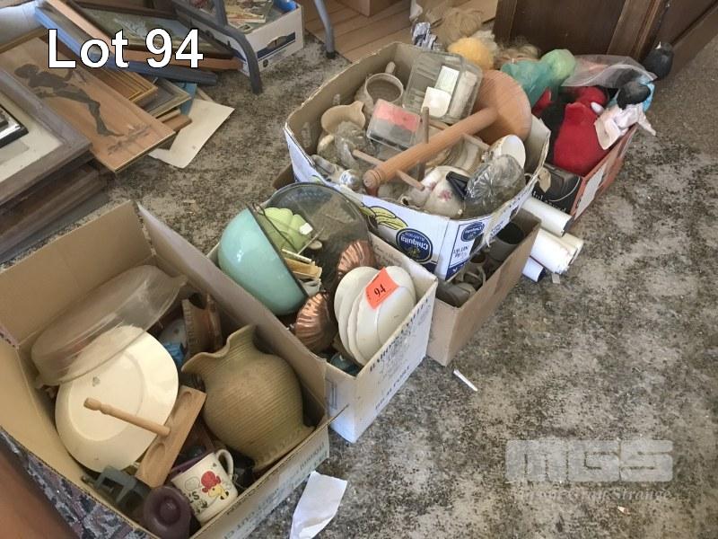 CERAMIC PLATES, GLASS DISHES, VASES, BOWLS, KIDS TOYS, ETC, 5 x BOXES