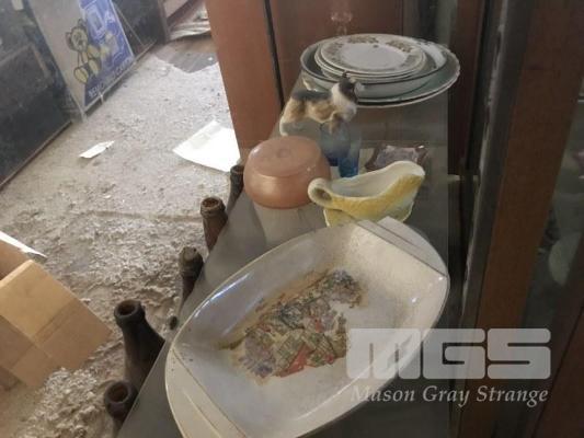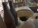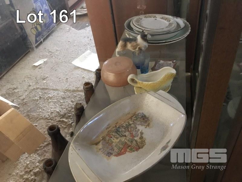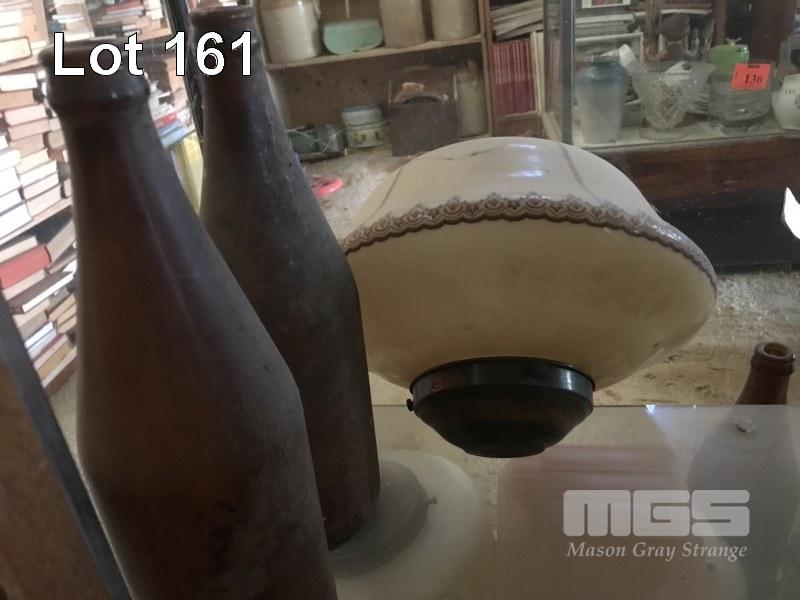 CERAMICWARE, GLASS DECO LIGHT SHADES, VINTAGE BOTTLES ETC (CONTENTS LOWER DISPLAY CASE)