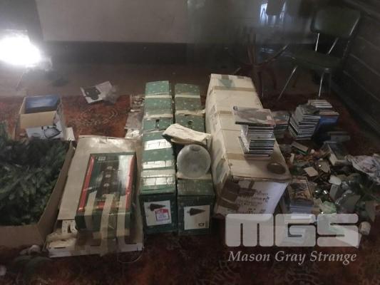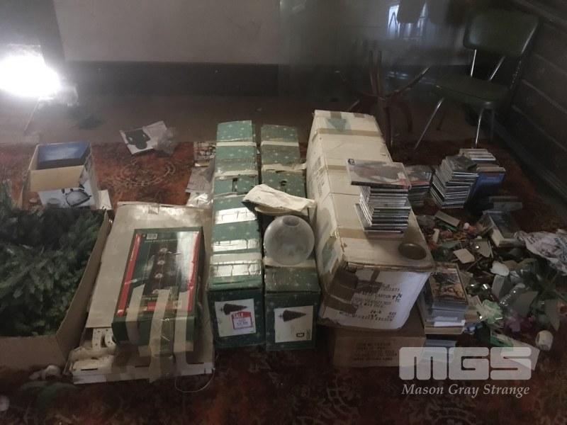 CHRISTMAS DECORATIONS, LARGE GLASS FRONTED DISPLAY CABINET, RECLINER, CHAIRS, STOOLS ETC (CONTENTS ENTIRE ROOM)
