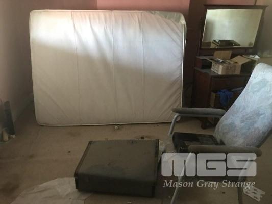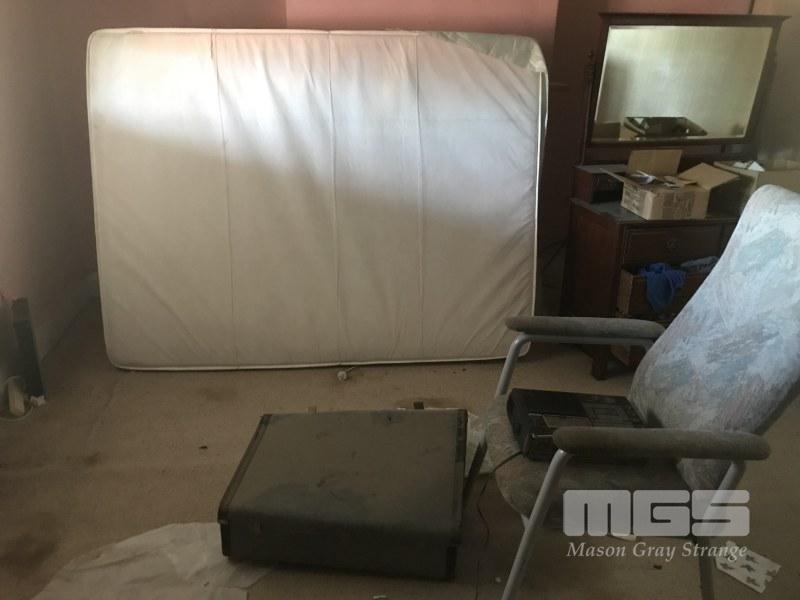 QUEEN-SIZE MATTRESS, ARMCHAIR, CLOTHING, SUITCASES ETC
