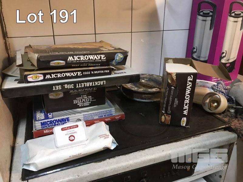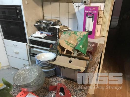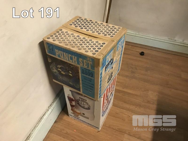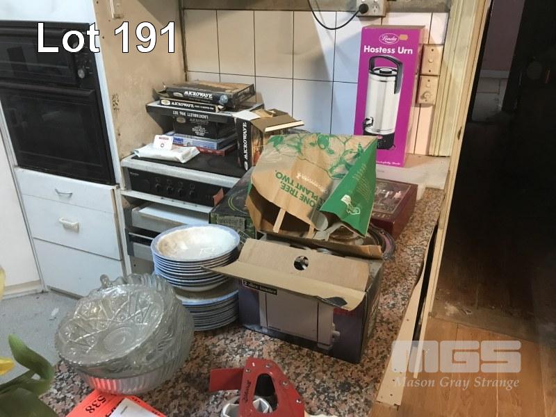 ASSORTED KITCHENWARE, COOKWARE, HOT WATER URN, PUNCH BOWL SET, ICECREAM MACHINE ETC