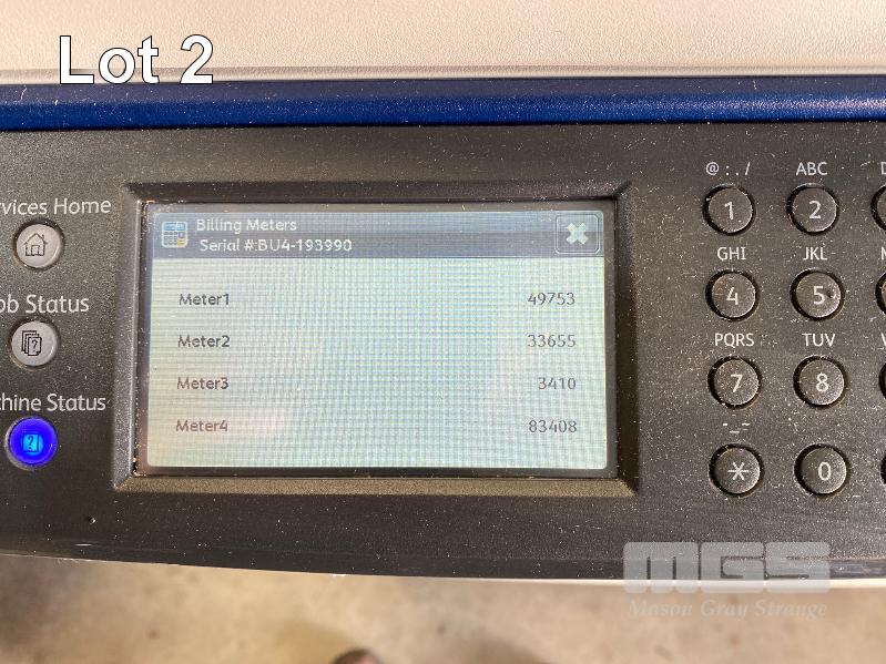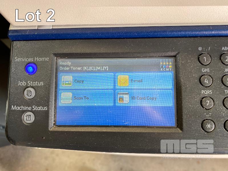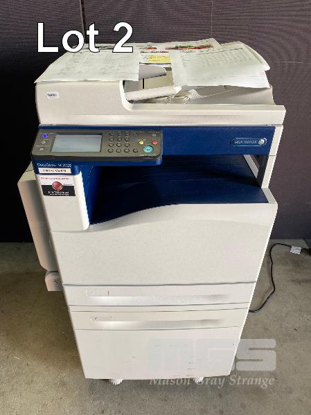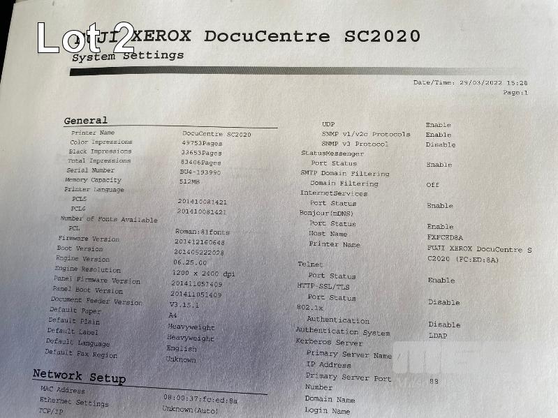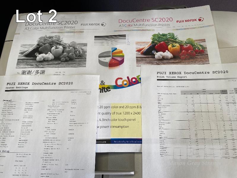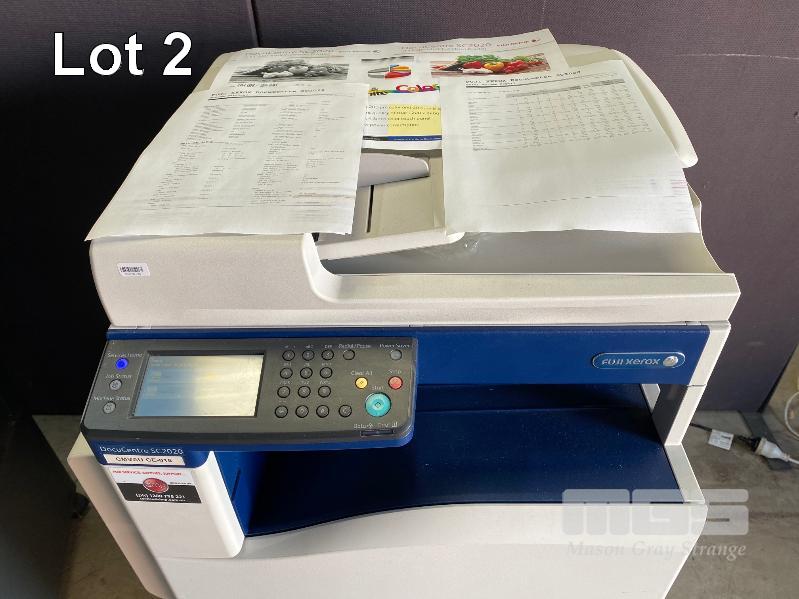 PRINTER, FUJI XEROX DOCUCENTRE SC2020 A3 COLOUR MULTIFUNCTION LASER, ADF, USB, NETWORK ON MOBILE CABINET, 83,406 PAGES (TEST PAGE ATTACHED - POOR) (MESSAGE ON SCREEN "ORDER [K], [C], [M], [Y]") S/N:BU4-193990