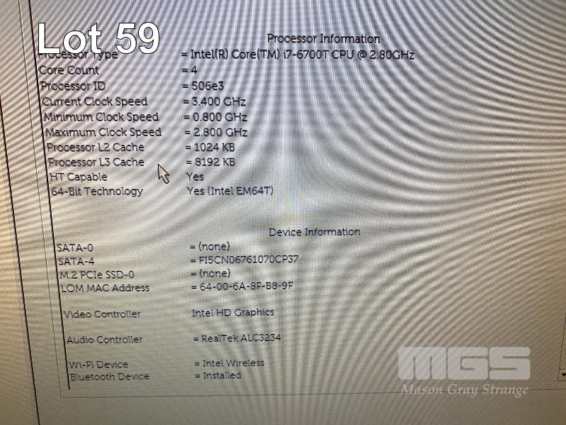 DESKTOP PC, DELL OPTIPLEX 7040 MICRO, CORE i7 6700T (6TH GEN) @ 2.8GHz, 8GB DDR4 RAM, 128GB M.2 SSD, INTEL HD VIDEO, 6 x USB, Wi-Fi, BLUETOOTH, WINDOWS 10 PRO INSTALLED & POWER SUPPLY (NO KEYBOARD, NO MOUSE) S/N:6BX1YC2