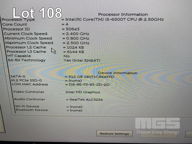 DESKTOP PC, DELL OPTIPLEX 3050 MICRO, CORE i5 6500T (6TH GEN) @ 2.1GHz, 8GB DDR4 RAM, 512GB SSD, INTEL HD VIDEO, 6 x USB, WINDOWS 10 HOME INSTALLED & POWER SUPPLY (NO KEYBOARD, NO MOUSE) S/N:4TXG6Q2