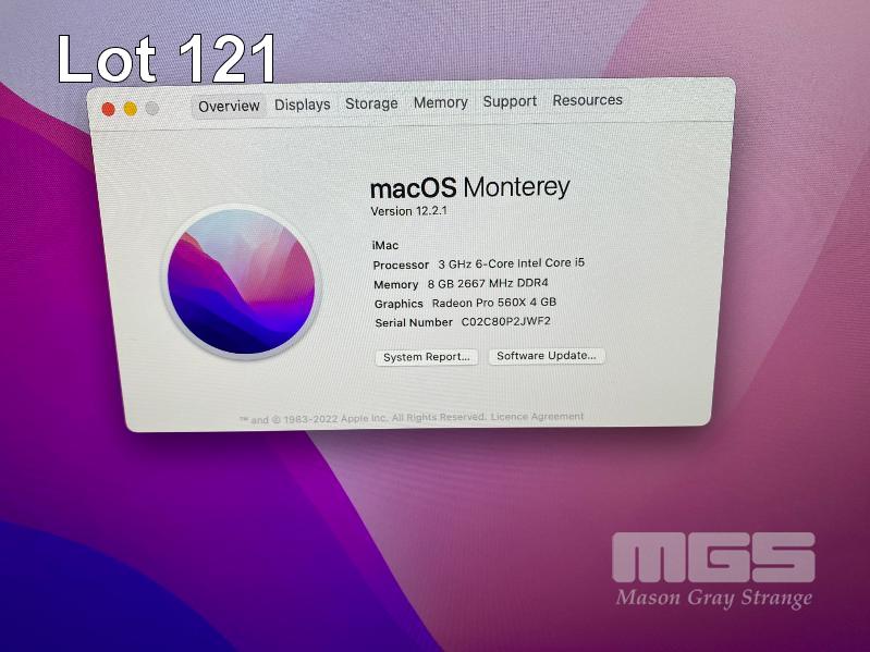 APPLE iMAC (A2116), CORE i5 8500 (8TH GEN) @ 3GHz, 8GB DDR4 RAM, 256GB NVMe SSD, BUILT-IN 21.5" RETINA DISPLAY (4096x2304), 4GB AMD RADEON PRO 560X VIDEO, Wi-Fi, USB-C, MAC OS 12 INSTALLED (WITH AS NEW WIRELESS KEYBOARD (A2450), WIRELESS MOUSE (A1657) & USB-C TO LIGHTNING CABLE) *** BEING REOFFERED DUE TO DEFAULT OF CONTRACT BY MR MAHDI AL JUMAILY OF KILBURN *** S/N:C02C80P2JWF2