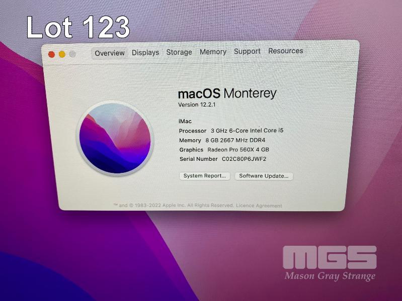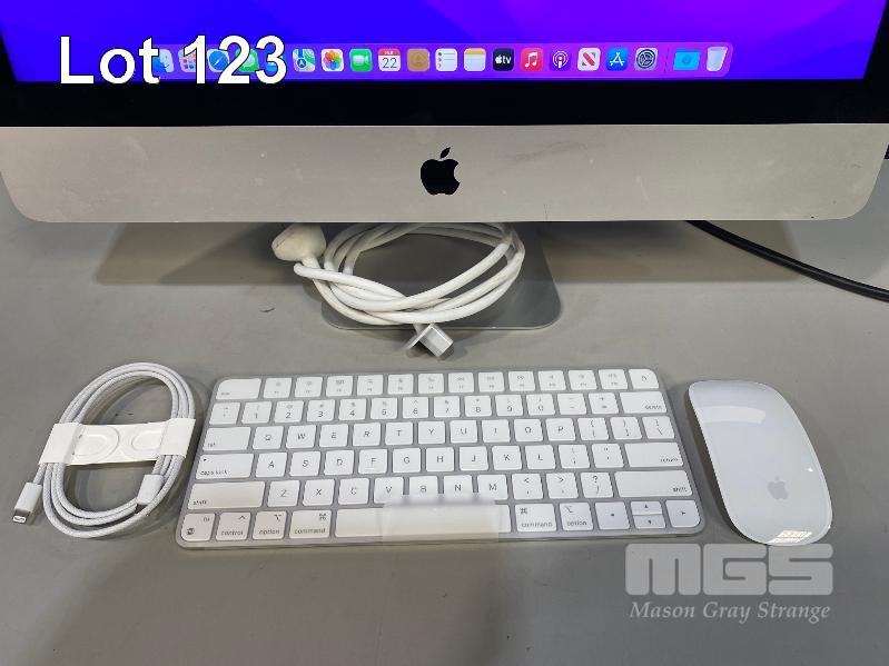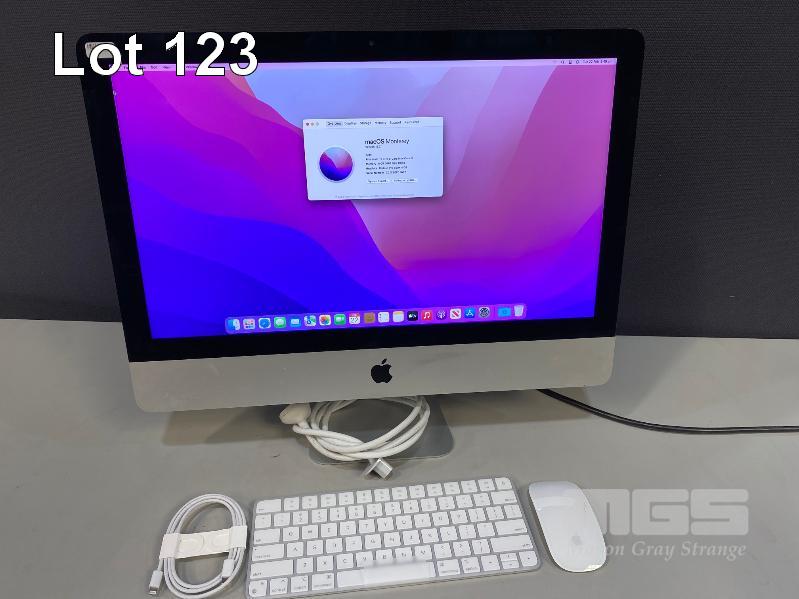 APPLE iMAC (A2116), CORE i5 8500 (8TH GEN) @ 3GHz, 8GB DDR4 RAM, 256GB NVMe SSD, BUILT-IN 21.5" RETINA DISPLAY (4096x2304), 4GB AMD RADEON PRO 560X VIDEO, Wi-Fi, USB-C, MAC OS 12 INSTALLED (WITH AS NEW WIRELESS KEYBOARD (A2450), WIRELESS MOUSE (A1657) & USB-C TO LIGHTNING CABLE) S/N:C02C80P6JWF2