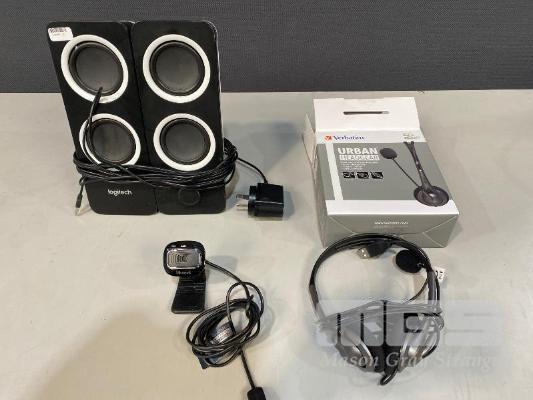 LOGITECH Z200 MULTIMEDIA SPEAKERS, MICROSOFT LIFECAM HD-3000 WEBCAM & VERBATIM USB HEADSET